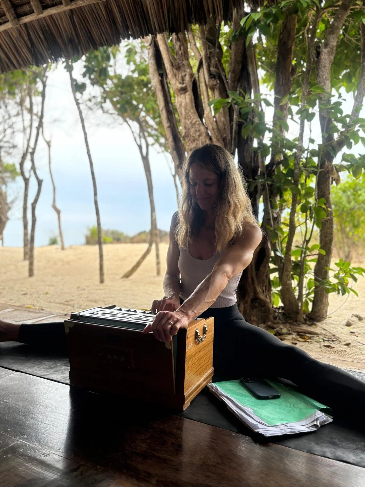 The teaching is energetic yet grounded. Contemporary music meets mantras. Precision meets playfulness. Conversations and reflection are naturally woven in – with warmth and humor.